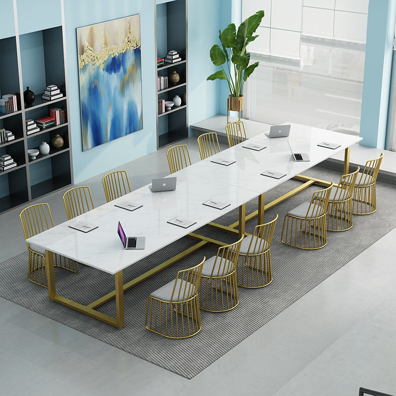 Meja konferensi panjang putih, Meja Baca konferensi besi marmer meja panjang sederhana besi meja kantor dan kursi meja dalam ruangan