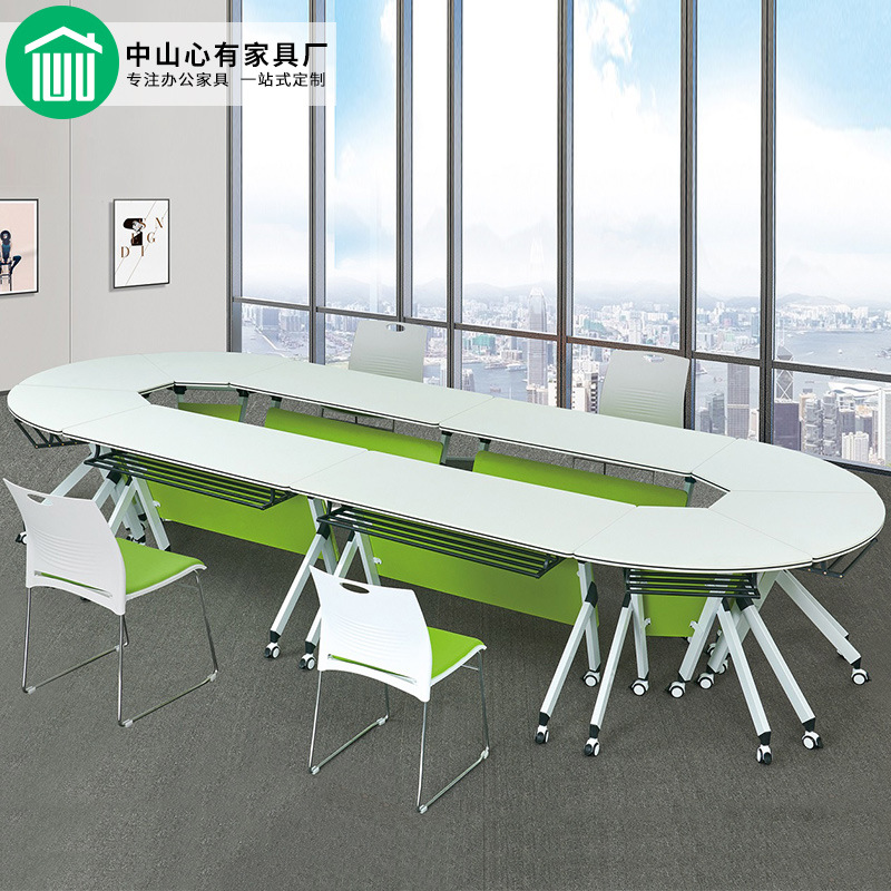 Furnitur kantor flip kombinasi busur kecil meja negosiasi meja konferensi bar meja pelatihan lipat seluler Hijau buah
