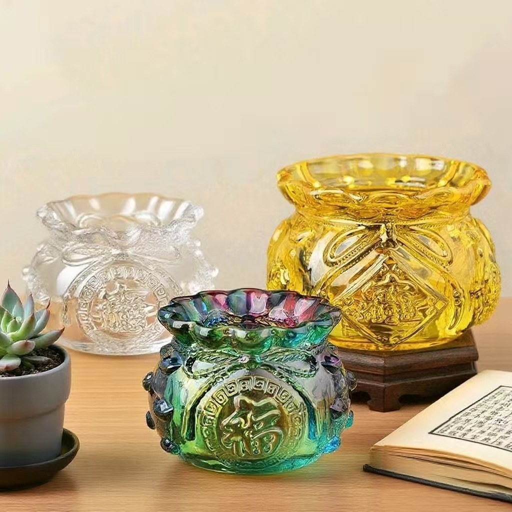钱袋福袋聚宝盆水晶家居客厅创意桌面摆件乔迁开业礼品办公室装饰