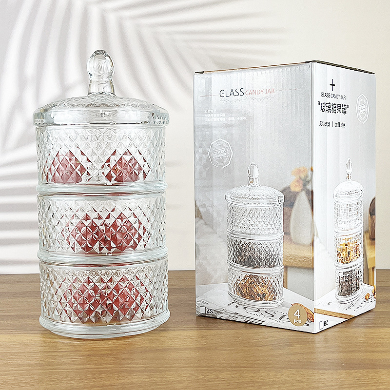 Kotak penyimpanan perhiasan penyimpan lilin aromaterapi, wadah permen kaca multi lapisan gaya Eropa, toples penyimpanan makanan ringan buah kering