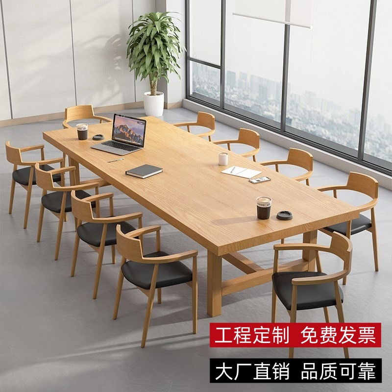 Meja konferensi dari kayu solid, meja panjang, meja kantor modern sederhana, meja pelatihan dan negosiasi untuk banyak orang, kombinasi meja dan kursi.