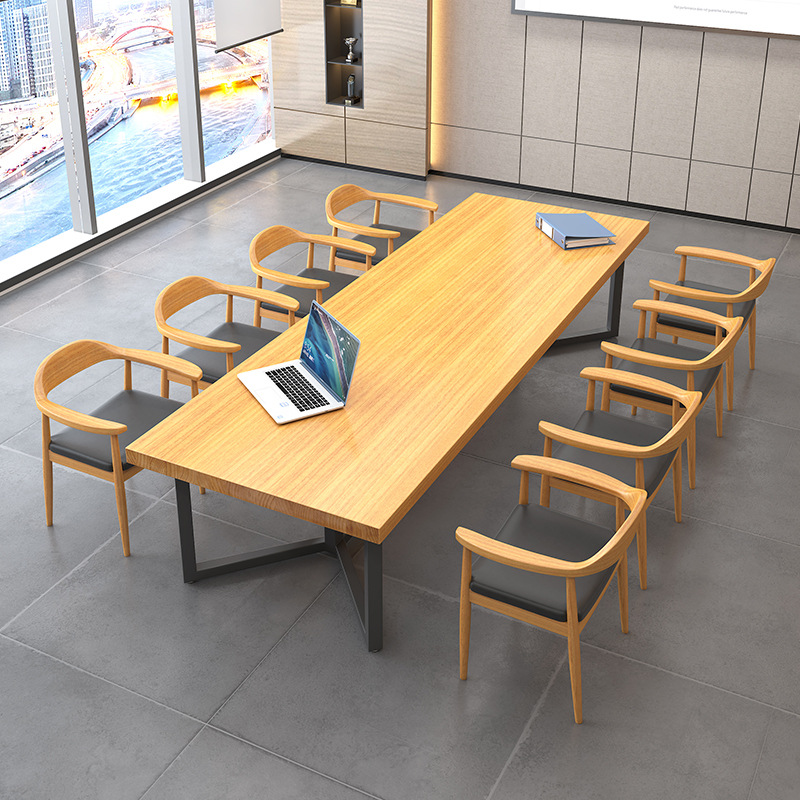 Meja Rapat Kayu Solid Meja Panjang Meja Kerja Meja Kerja Sederhana Kombinasi Meja Kerja Kantor dan Kursi Ruang Rapat Kecil Meja Negosiasi Meja Panjang