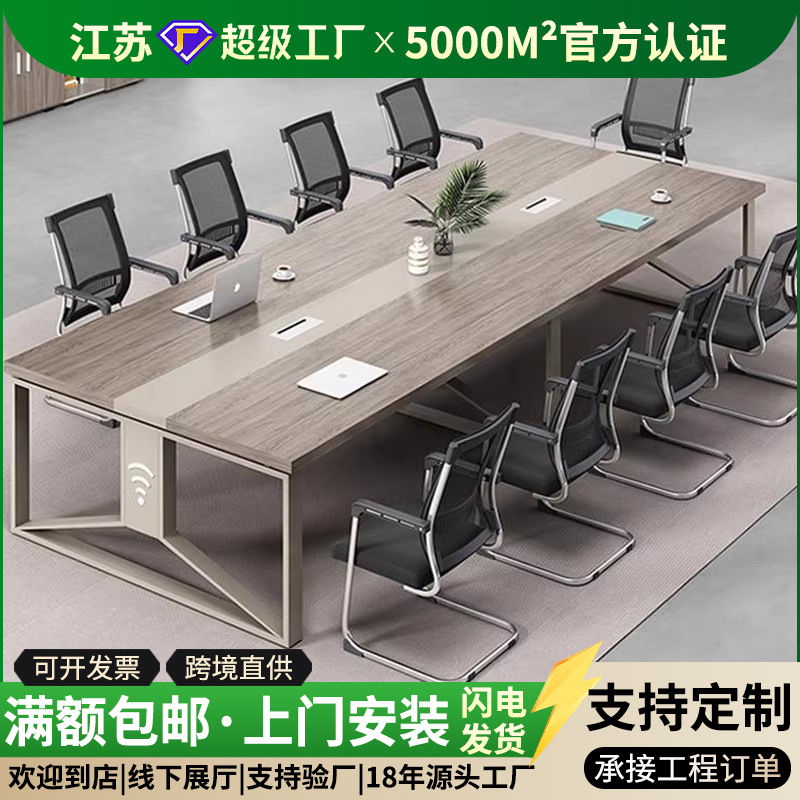 Meja konferensi multi-orang, meja dan kursi industri gaya sederhana meja konferensi besar meja panjang meja penerimaan furnitur kantor