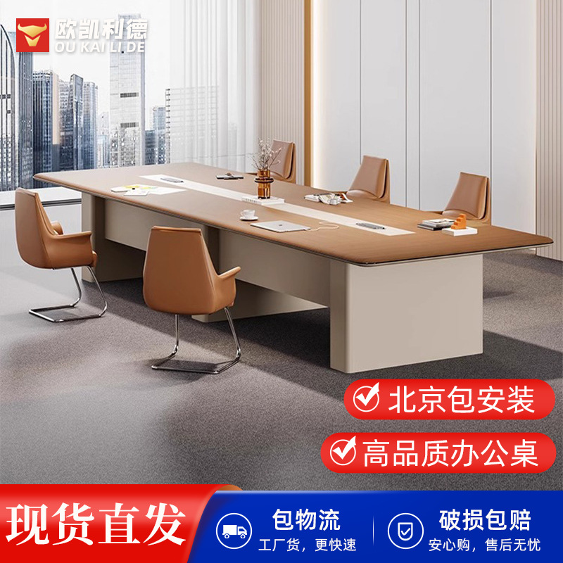 Meja konferensi meja panjang bingkai kayu, kombinasi meja konferensi dan kursi sederhana ringan mewah, Meja latihan negosiasi pertemuan panjang
