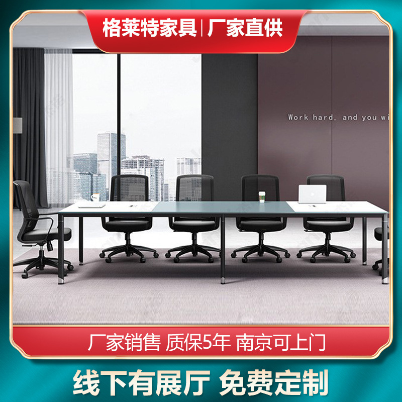 Meja panjang konferensi bingkai baja Nanjing meja latihan staf ruang konferensi persegi modern sederhana furnitur kantor Nanjing