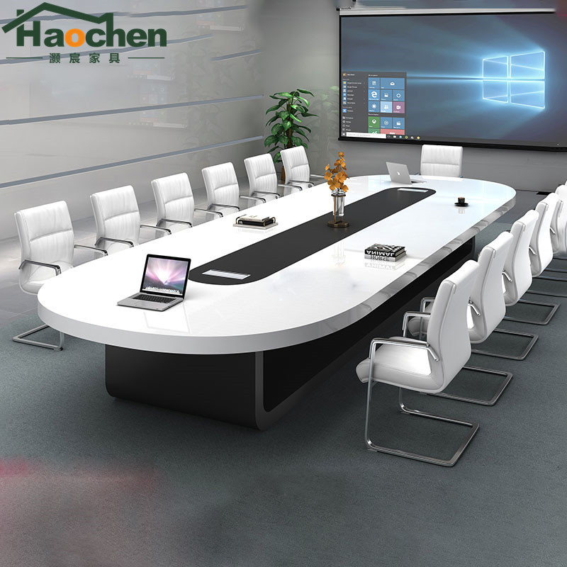 Meja konferensi besar, meja konferensi modern Panjang kayu padat multi-orang kombinasi oval