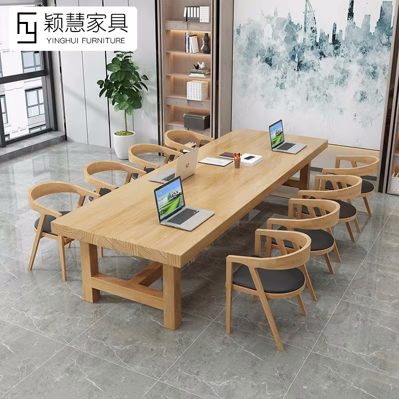 Meja konferensi kayu solid Nordic dan kursi kombinasi meja log meja negosiasi bisnis meja perpustakaan minimalis modern dan kursi