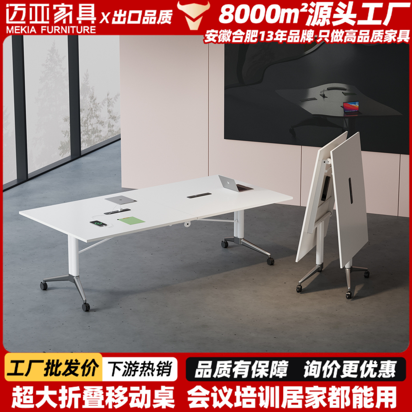 Meja konferensi lipat, kombinasi kursi dapat digerakkan sederhana ruang konferensi modern splicing meja latihan ganda