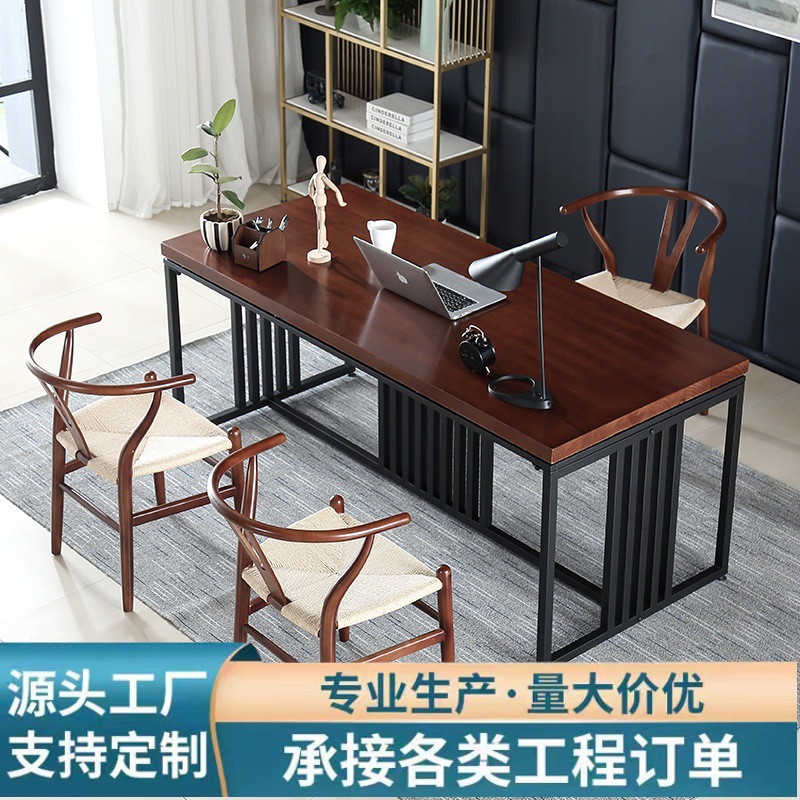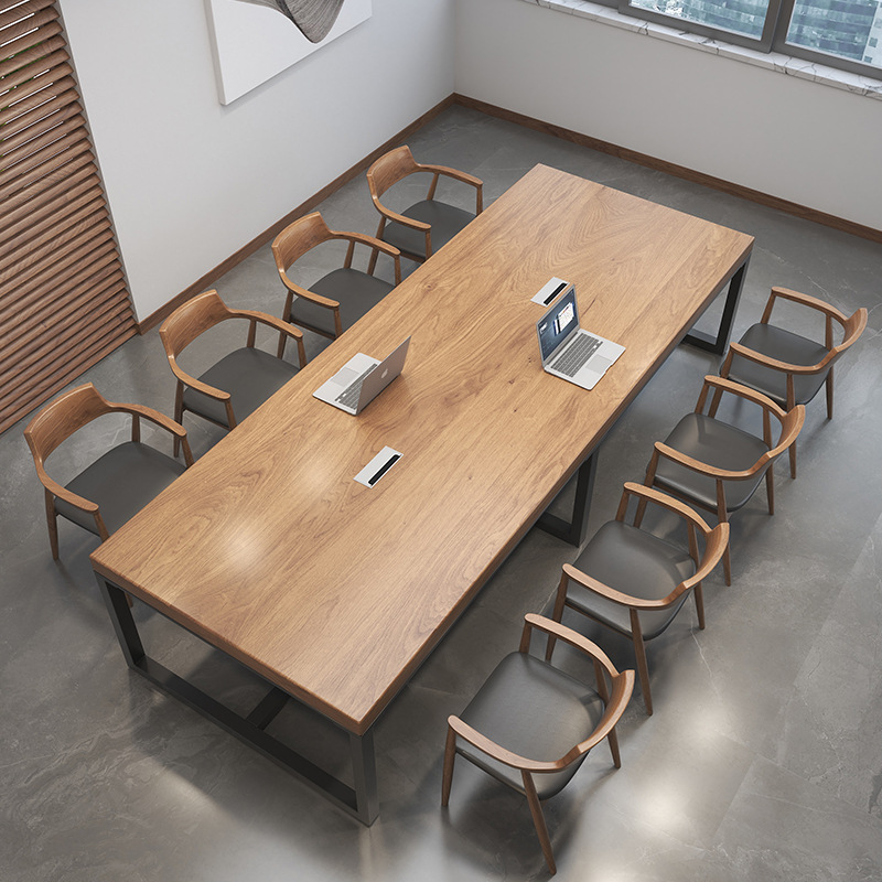 Meja negosiasi panjang, kayu Nordic meja konferensi persegi panjang staf pelatihan perusahaan meja besi kayu solid meja negosiasi panjang