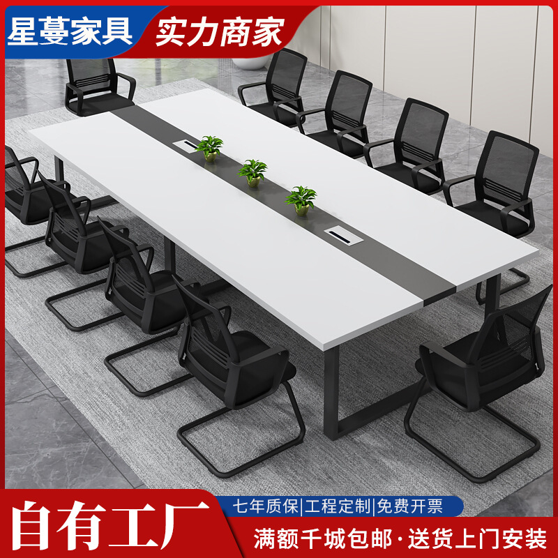 Meja panjang konferensi, meja konferensi minimalis modern, Meja latihan kantor, kombinasi kursi dan meja panjang 6-8 orang