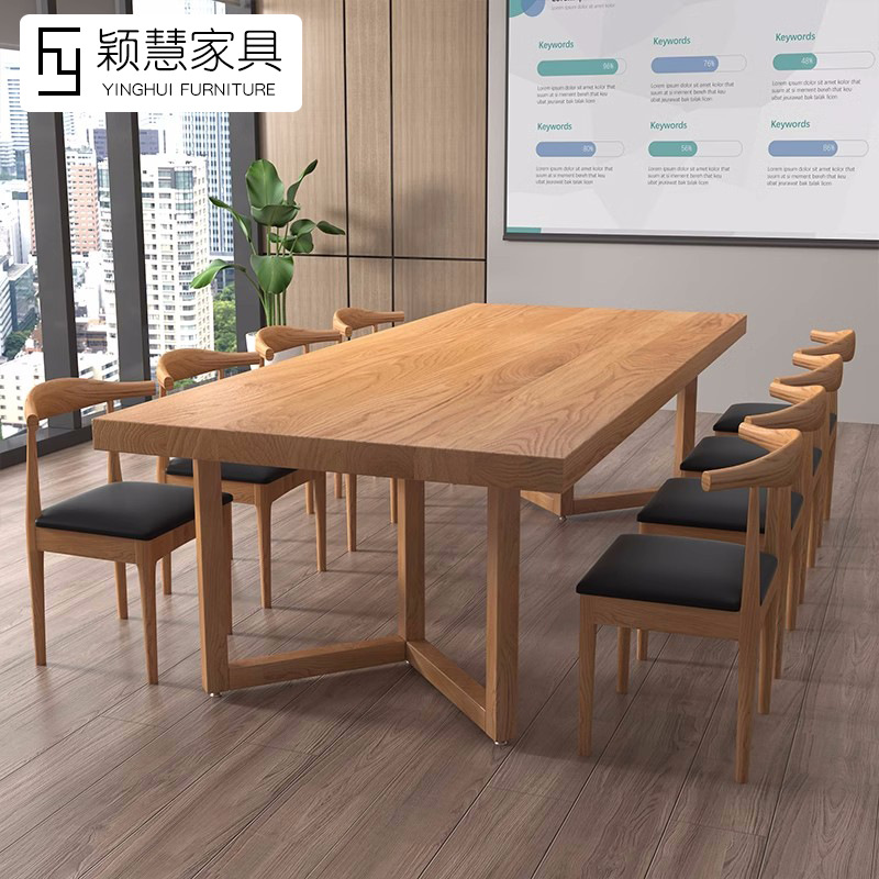 Meja konferensi kayu solid Modern dan kursi kombinasi perusahaan meja latihan meja panjang sederhana meja negosiasi meja negosiasi