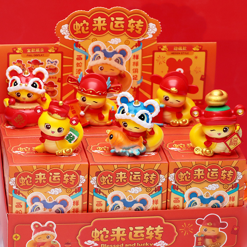 新款蛇来运转盲盒创意树脂桌面摆件脂公仔解压新年活动小礼物批发