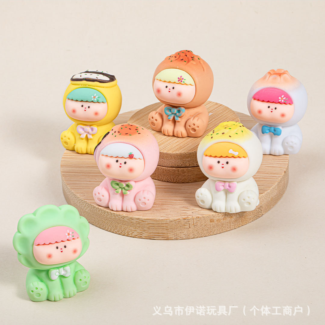 Ornamen desktop yang dicat, boneka lucu, ornamen kecil kreatif, tas buta, kotak buta, ornamen kecil resin pameran bermain trendi