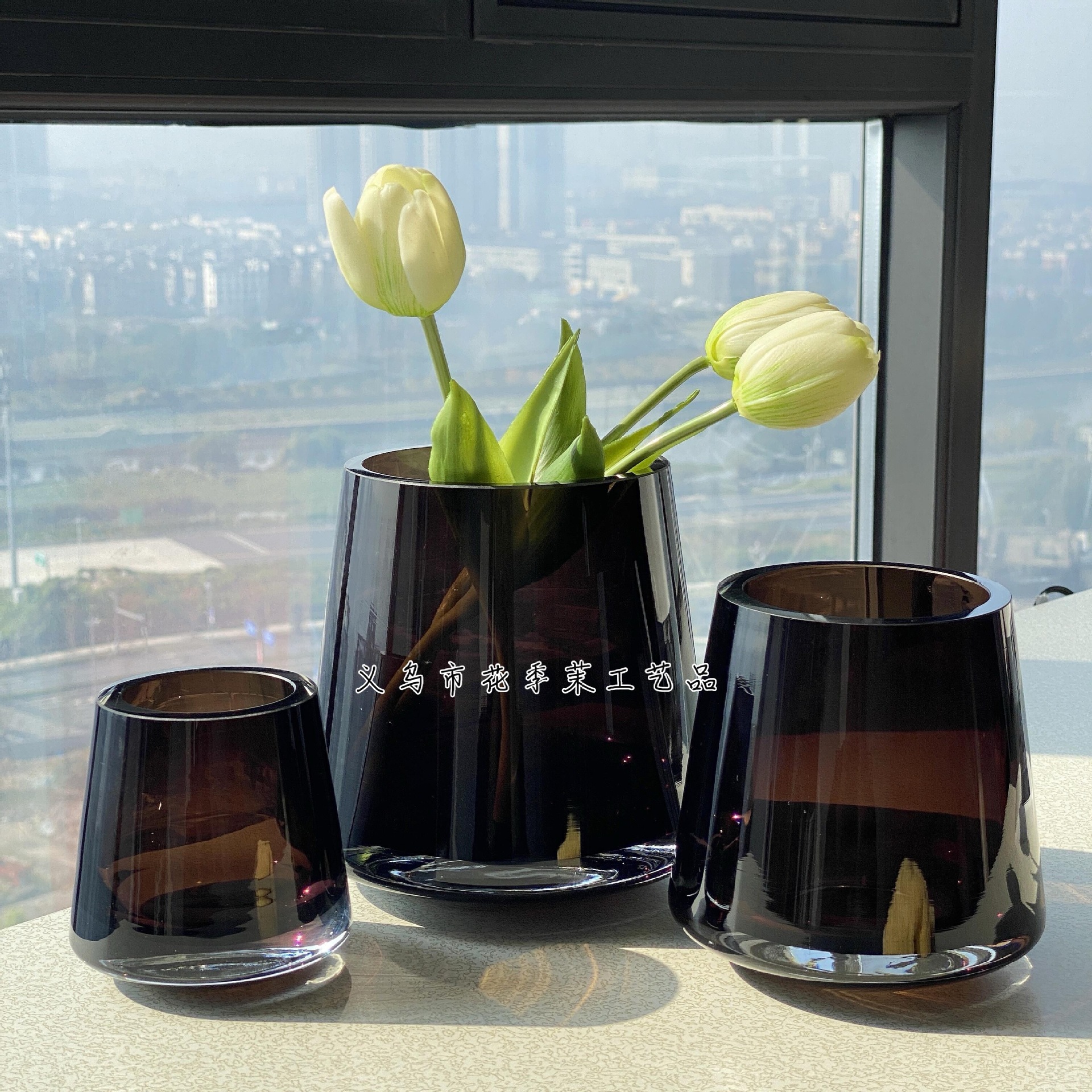 HJM-丹麦进口轻奢简约琉璃玻璃花瓶家居客厅洽谈桌插花软装饰摆件