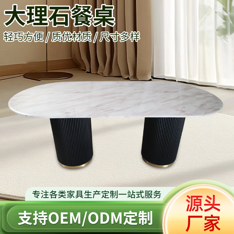 Meja makan marmer berbentuk oval yang indah untuk penggunaan di rumah, meja panjang untuk rapat, meja makan marmer modern, sederhana, dan bergaya.