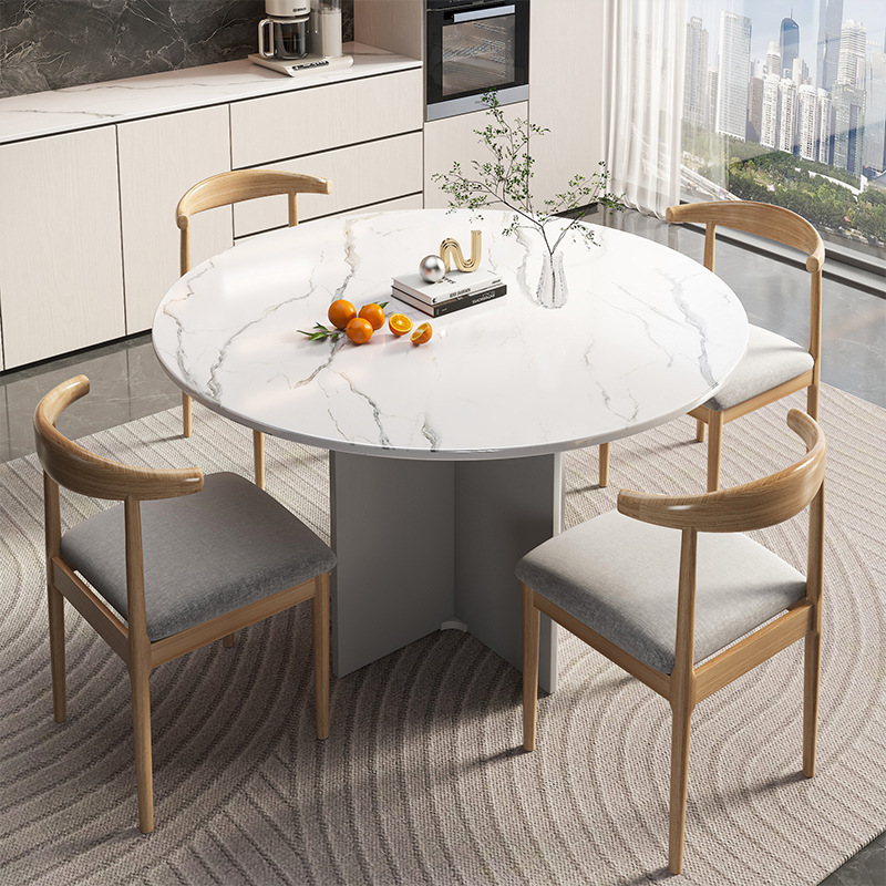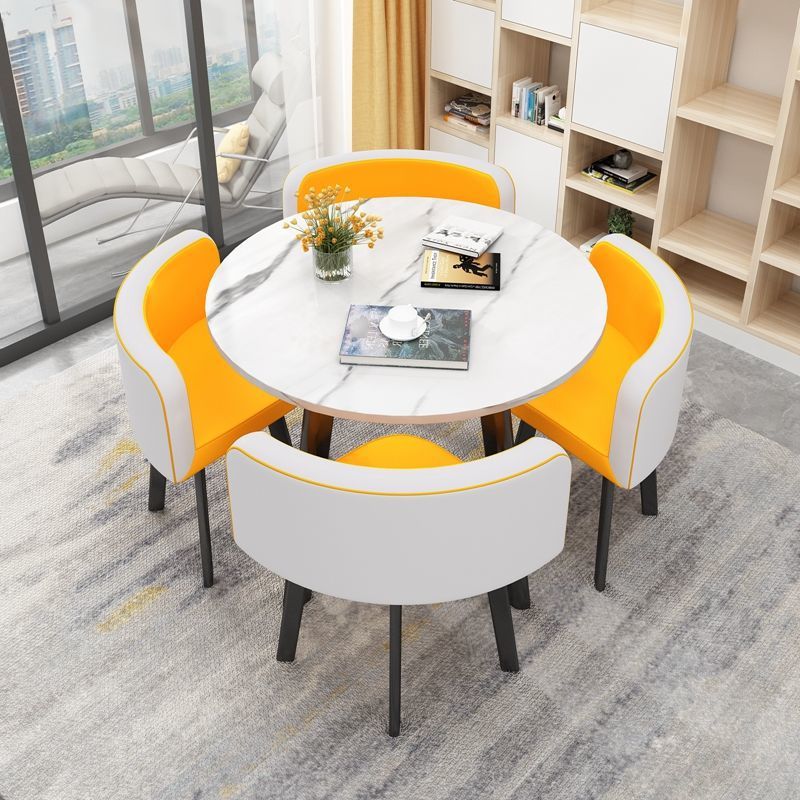 Meja Bundar Set Kursi Meja Makan Gaya Mewah Ringan Modern Set Meja Makan Rumah Tangga Ukuran Kecil Negosiasi Kombinasi Meja dan Kursi