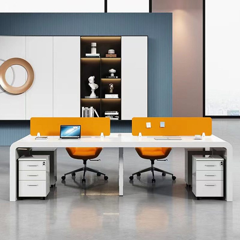 Bingkai baja Staf sederhana modern putih 2/4/6 orang kursi layar stasiun meja kantor dan kursi set meja komputer keuangan