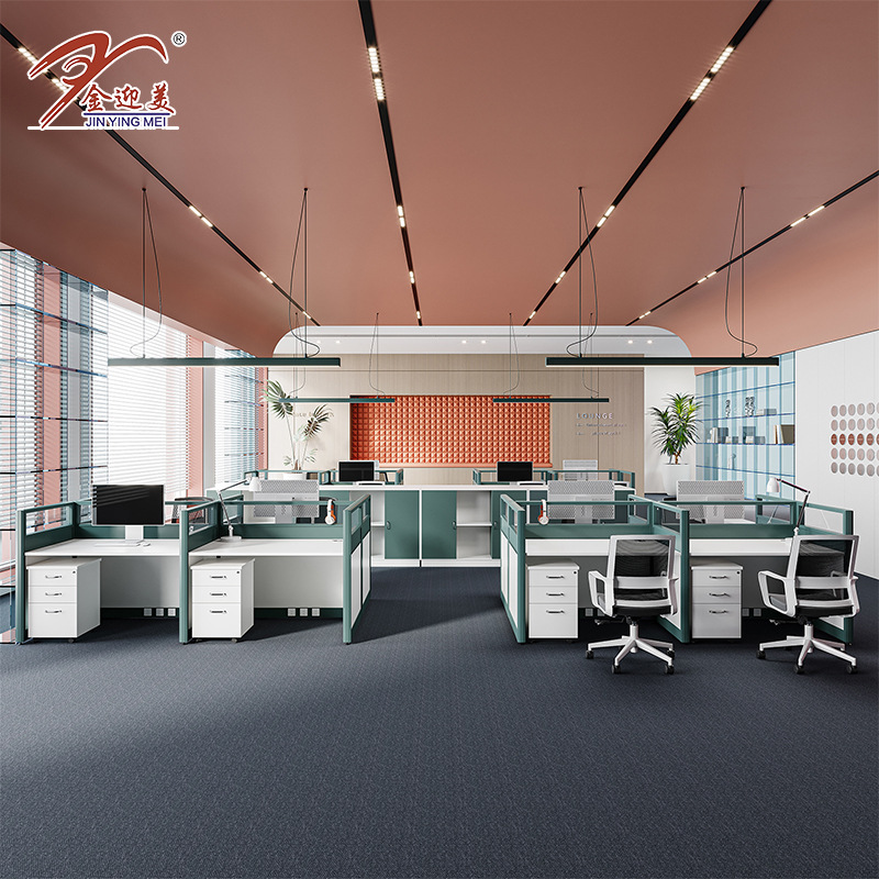 Meja Keuangan Modern Sederhana Model Baru Meja Kerja Staf Kantor Meja Kursi Kombinasi Kursi Meja Komputer Tempat Kartu Layar 4 Orang