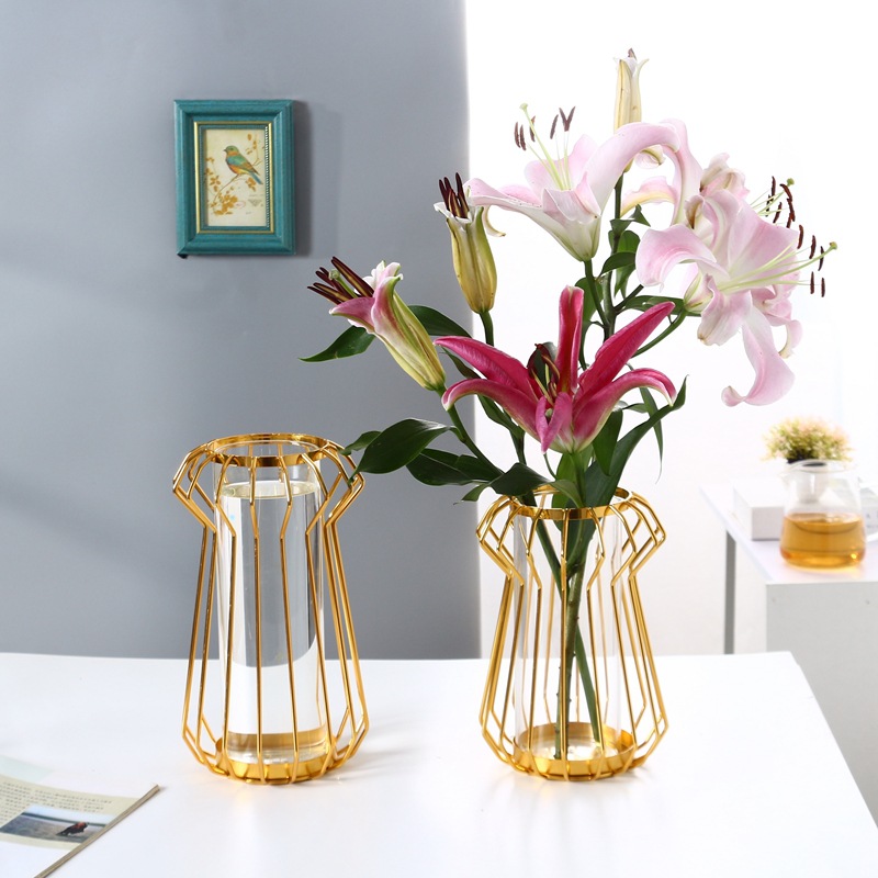 Cross-border vas hidroponik besi emas, dekorasi meja hotel DIY bunga berlapis emas untuk ruang tamu lorong
