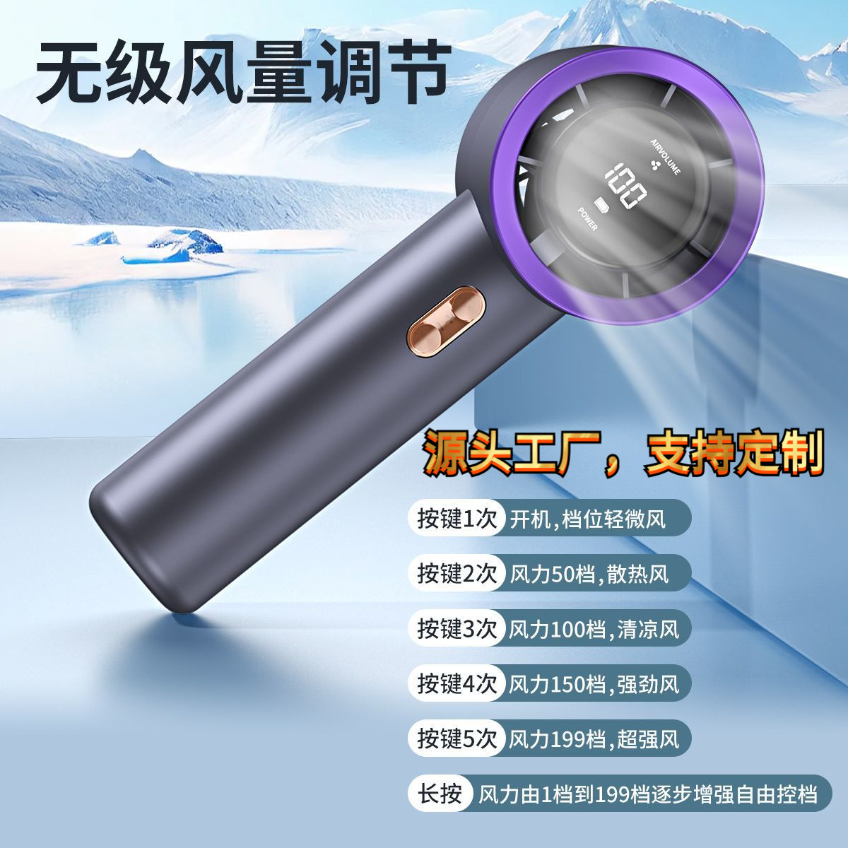 2025新款跨境高速手持小风扇 usb充电迷你便携式涡轮无叶暴力静音