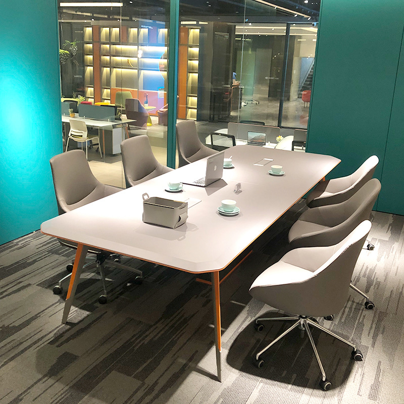 C & Pernis Sisi Miring Meja Konferensi Bentuk Lengkung Sederhana Meja Baca Ruang Negosiasi Ukuran Modern Sederhana Kombinasi Meja Panjang Kursi