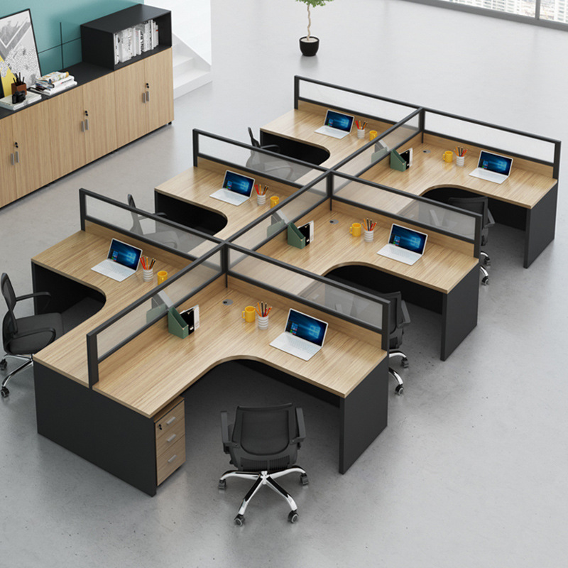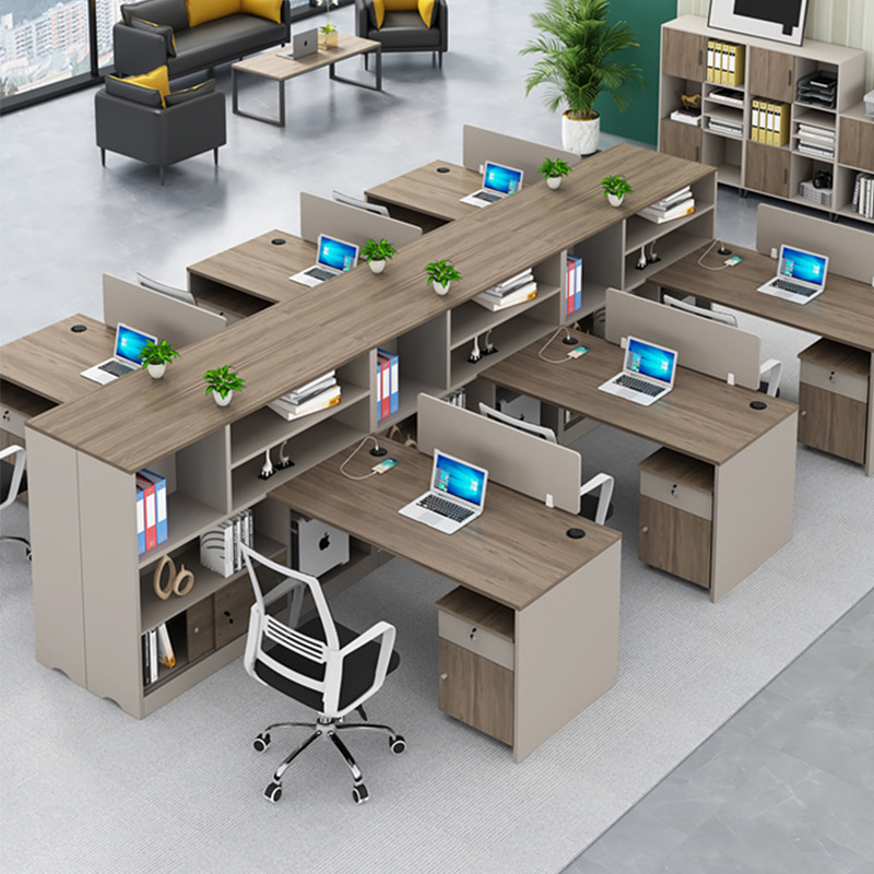 Meja layar furnitur kantor 4/6 orang, meja staf meja kantor, meja dan kursi kombinasi