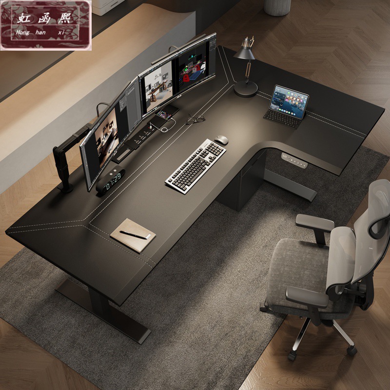 Meja Kerja Permukaan Kulit Sudut Tipe L Meja Kerja Meja Komputer E-sports Rumah Tangga Meja Meja Kayu Solid