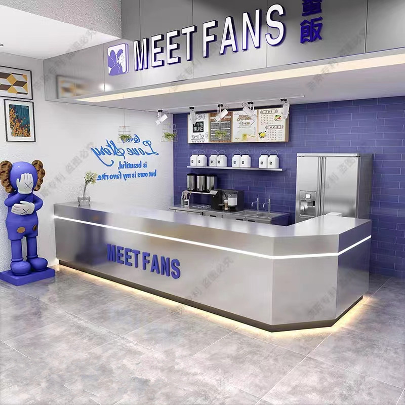 简约现代不锈钢餐饮烧烤奶茶店吧台咖啡店前台酒吧收银台转角