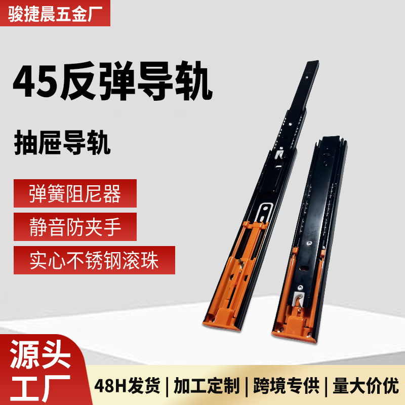 Peredam 45 Lebar Tiga Bagian Laci Slide Rel Perabotan Bola Bisu Panduan Perabotan Meja Slide Track Aksesoris Pabrik Tahan Berat