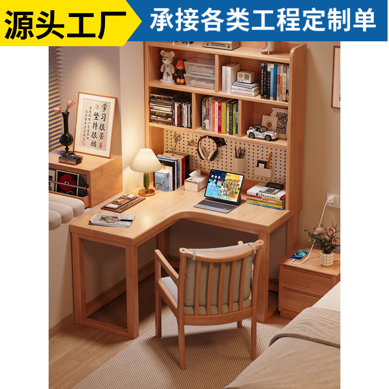 Meja sudut kayu solid rak buku berbentuk L meja belajar dinding sudut kamar tidur rumah tangga meja komputer dengan lubang