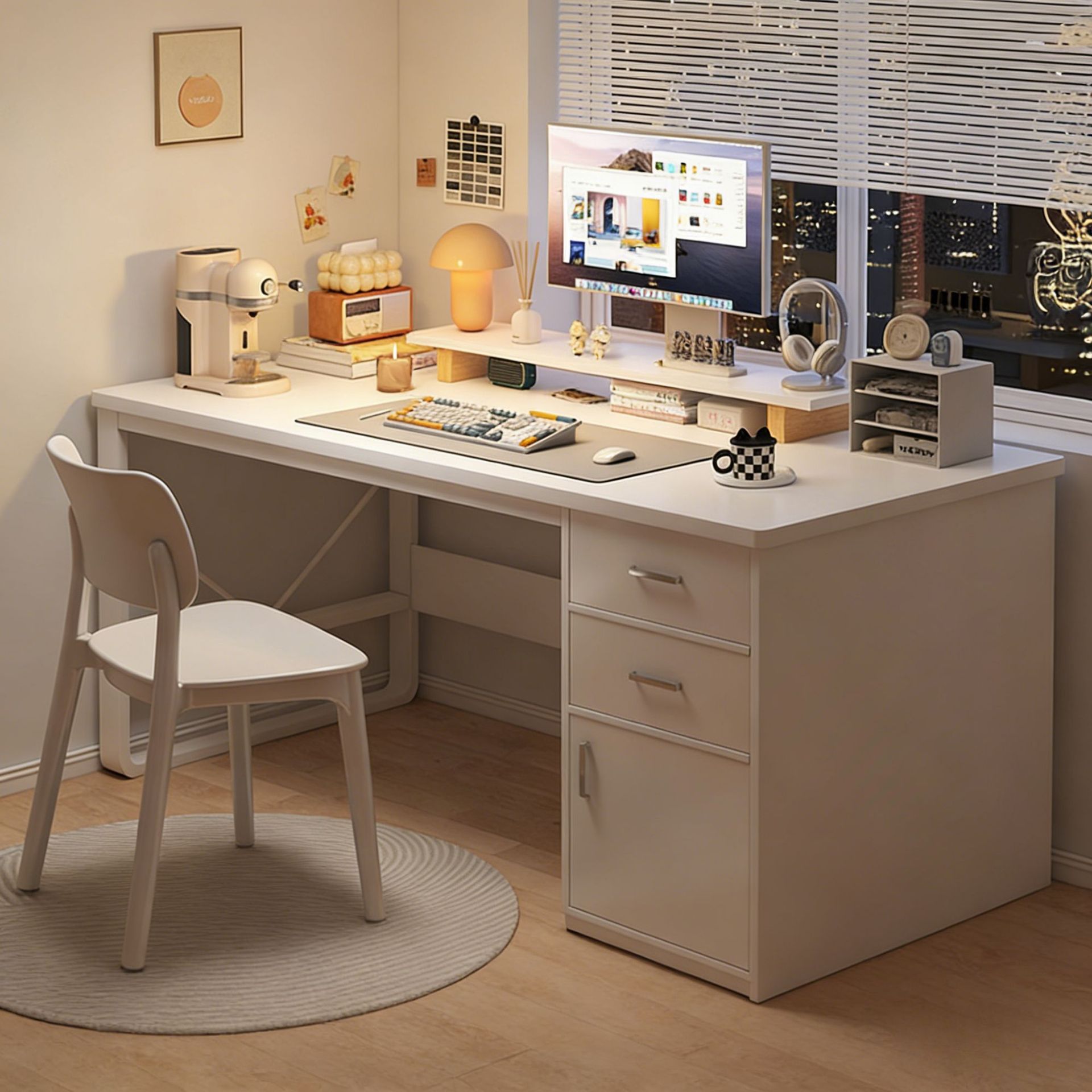 Meja komputer desktop rumah kamar tidur pelajar, meja tulis dengan laci meja staf dan kursi kombinasi meja