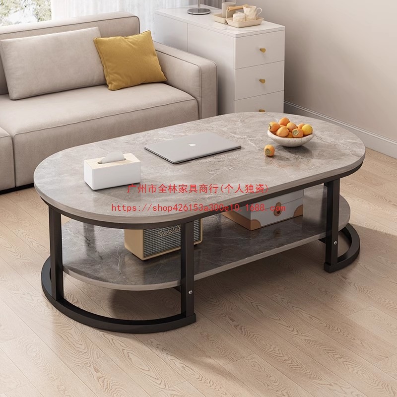 茶几客厅家用现代简约小户型桌子出租屋阳台双层茶台椭圆形茶几桌