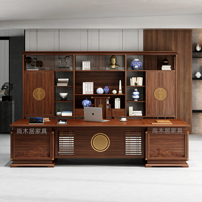 Furnitur kantor meja bos kulit kayu padat meja kantor dan kursi kombinasi meja manajer meja eksekutif meja eksekutif gaya Tiongkok baru