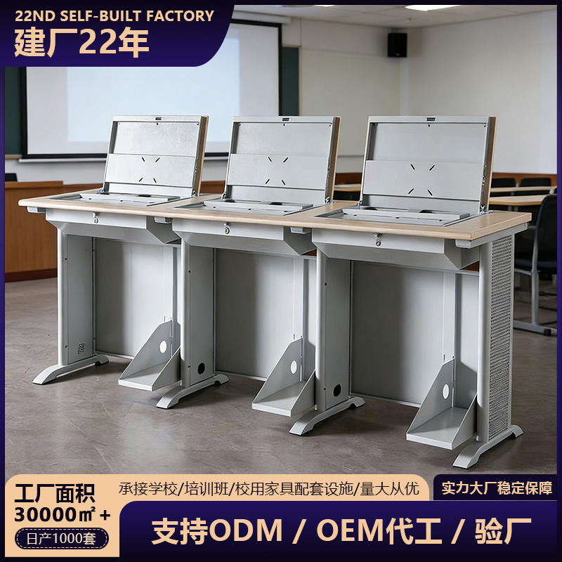 Meja komputer Flip, meja siswa tersembunyi, pusat data multimedia elektronik untuk sekolah, Meja latihan kombinasi baja dan kayu