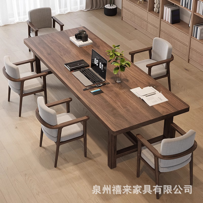 Meja Panjang Kayu Solid Ruang Tamu Kelas Atas Meja Papan Besar Kayu Walnut Amerika Selatan Meja Belajar Meja Baca Modern