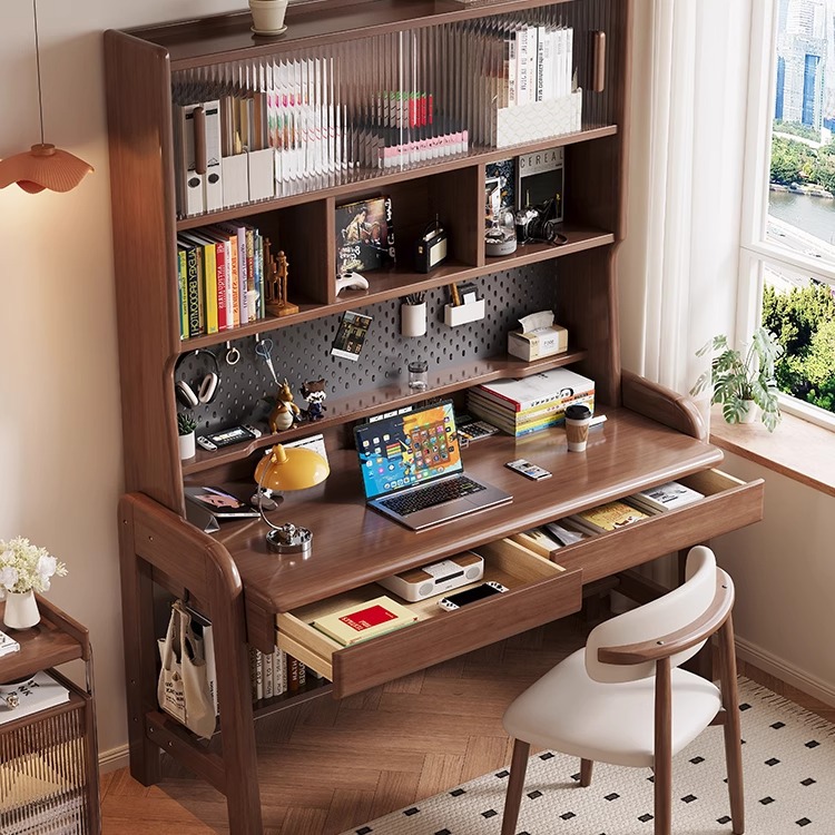 Meja Kayu Solid Seluruh Rak Buku Meja Tulis Bisa Diangkat Tipe Unit Kecil dan Menengah Kamar Tidur Meja Komputer dengan Papan Lubang