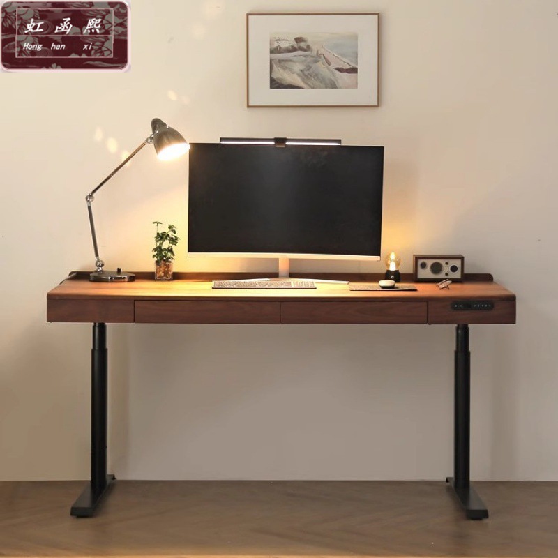 Meja E-sports Kayu Solid Dapat Diangkat dan Diangkat Meja Kenari Hitam Kantor Komputer Tipe Berdiri Listrik Meja Kerja