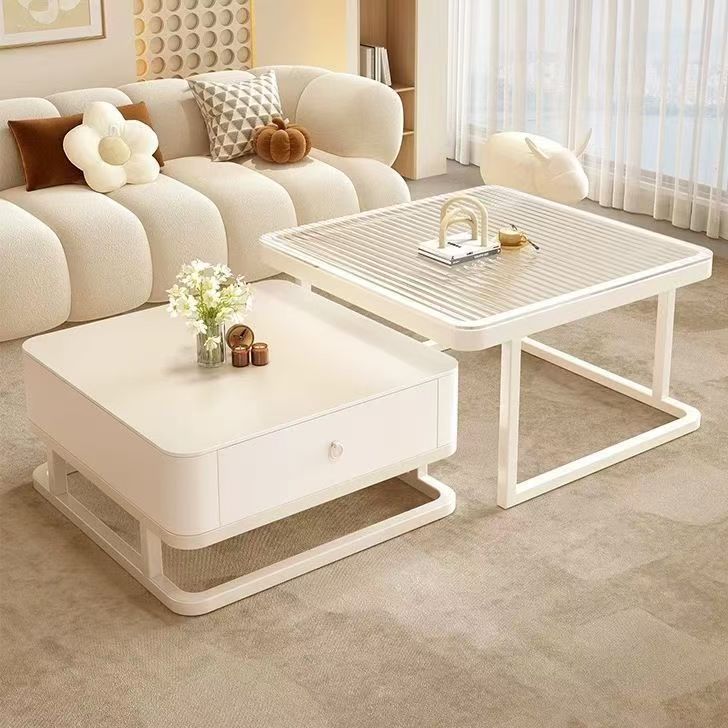 2024 Model Baru Papan Batu Krim Meja Teh Rumah Tangga Meja Meja Teh Rumah Tangga Kombinasi Persegi Modern Sederhana Mewah Ringan Tipe Kecil
