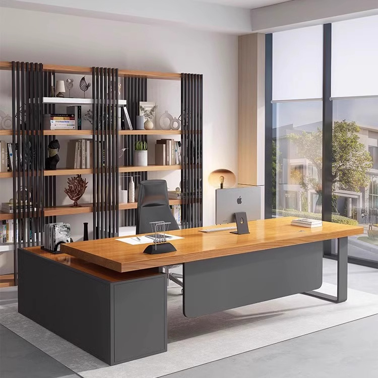 Meja Pemilik Kayu Solid Meja Meja Komputer Perabot Meja Manajer Umum Modern Sederhana Meja Meja Kerja dengan Kabinet Samping
