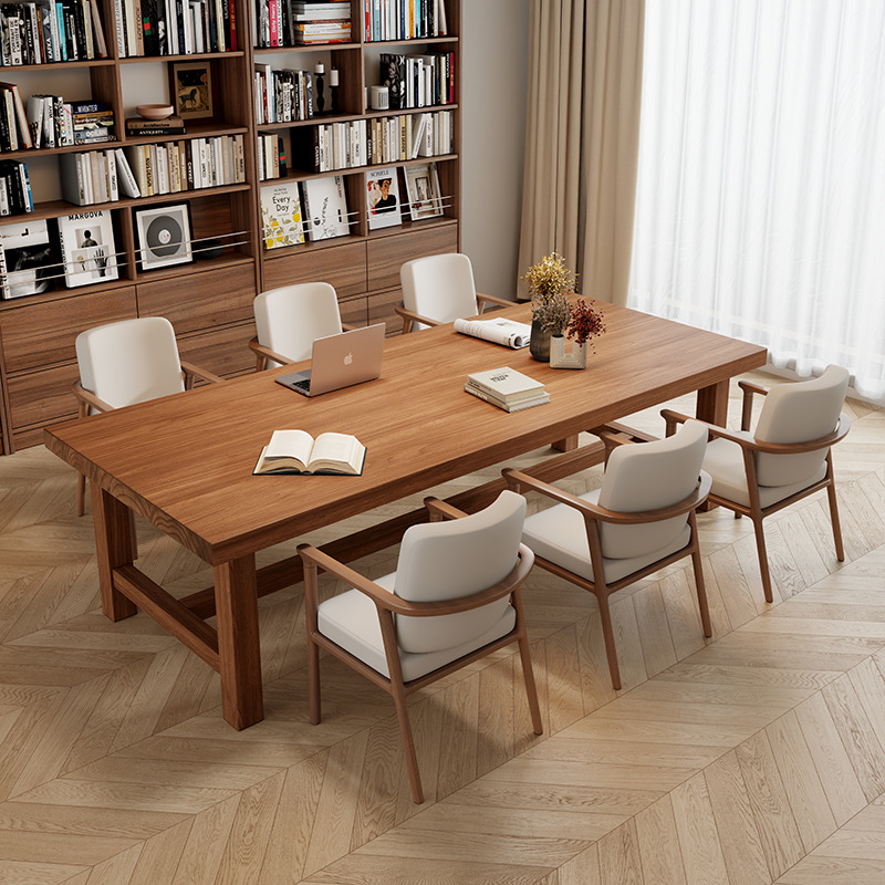 Meja panjang kayu polos, meja konferensi besar meja panjang sederhana modern persegi panjang meja latihan negosiasi dan kursi Nordik