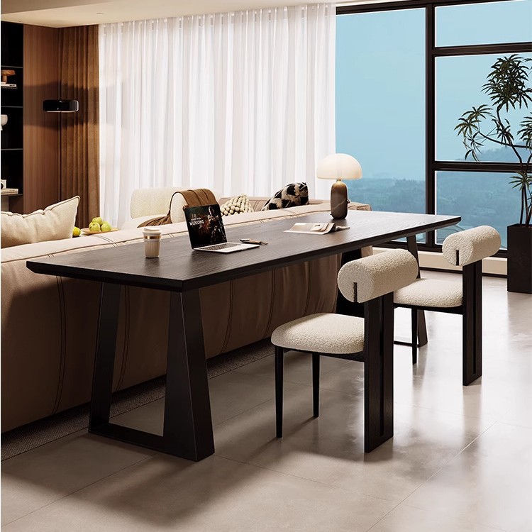 Meja Kayu Solid Hitam Meja Belajar Dua Orang Meja Panjang di Belakang Sofa Ruang Tamu Rumah Tangga Minimalis