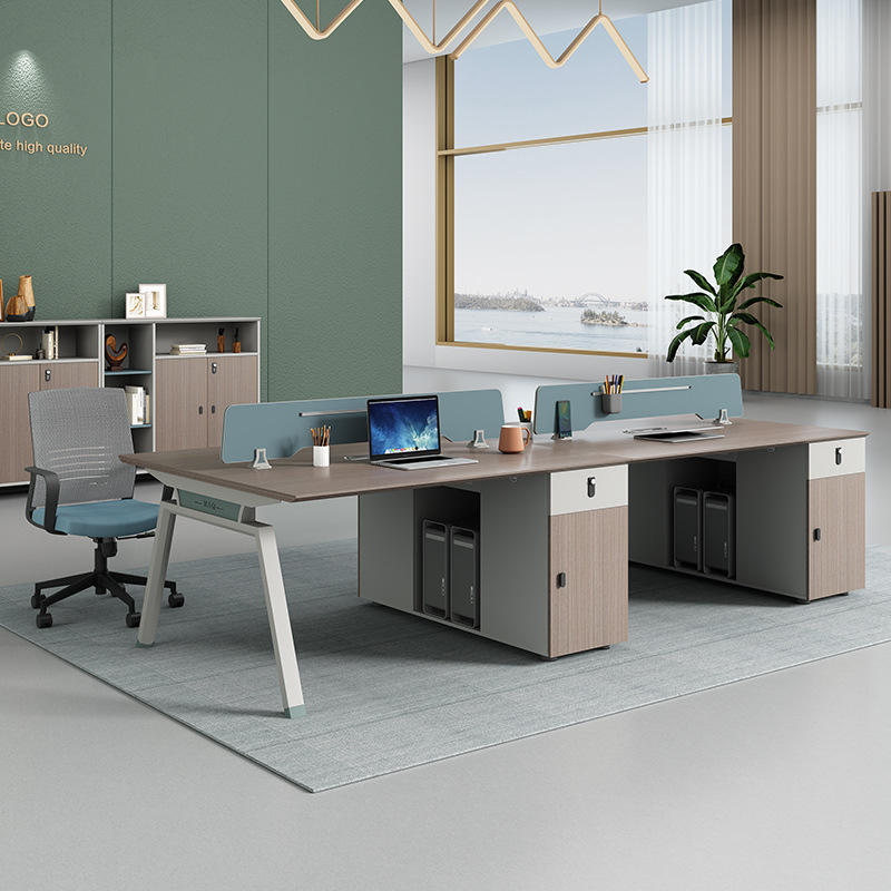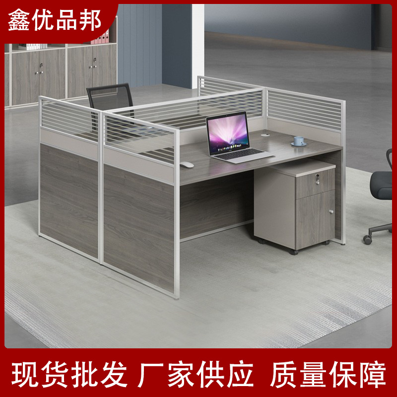 Meja kantor 4 orang, layar ganda empat kursi posisi kartu staf kantor Modern meja komputer dan kursi kombinasi