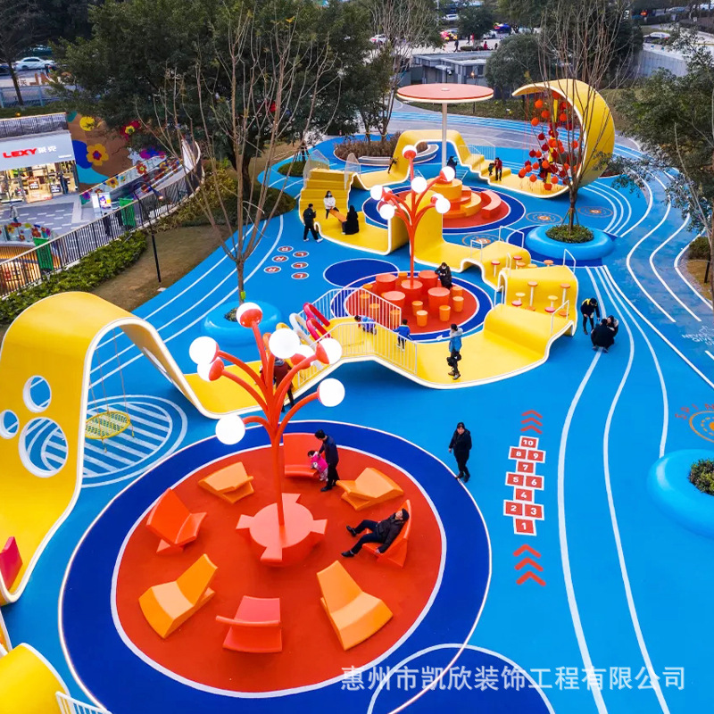 Kursi Fiberglass tema taman anak-anak bangku tempat bermain aktivitas area lanskap pelangi jembatan geser dinding patung besar