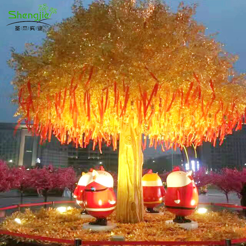 Pohon harapan Pohon Banyan emas, simulasi pohon besar luar ruangan, pohon lanskap palsu emas Banyan daun simulasi pilar Banyan pohon