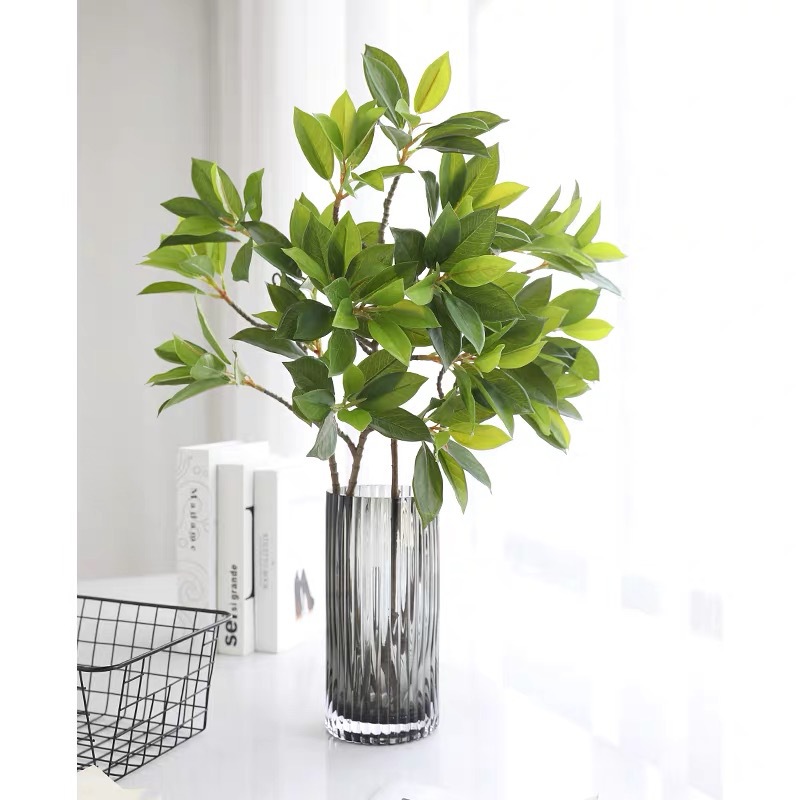 Tanaman hijau buatan dengan tekstur realistis, ranting tunggal daun keberuntungan, daun untuk lansekap skala besar, dekorasi hotel.