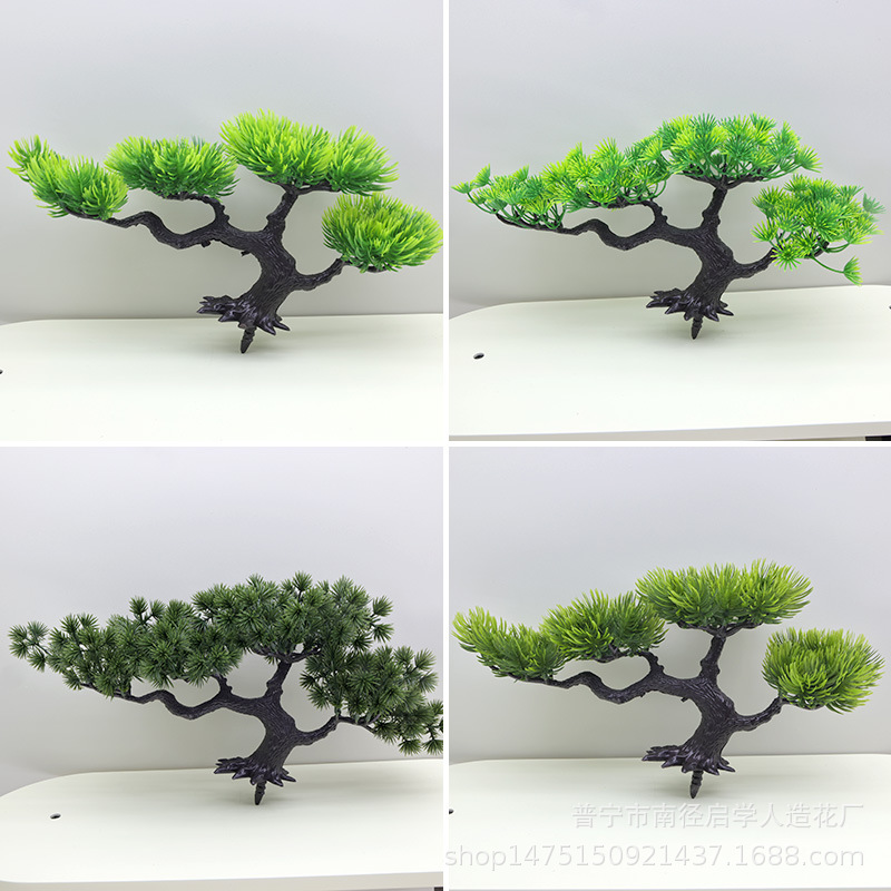 Tanaman bonsai buatan, pot tanaman bonsai buatan, dekorasi indah lingkungan, lanskap rumah, bunga buatan, punggung kura-kura 12 daun