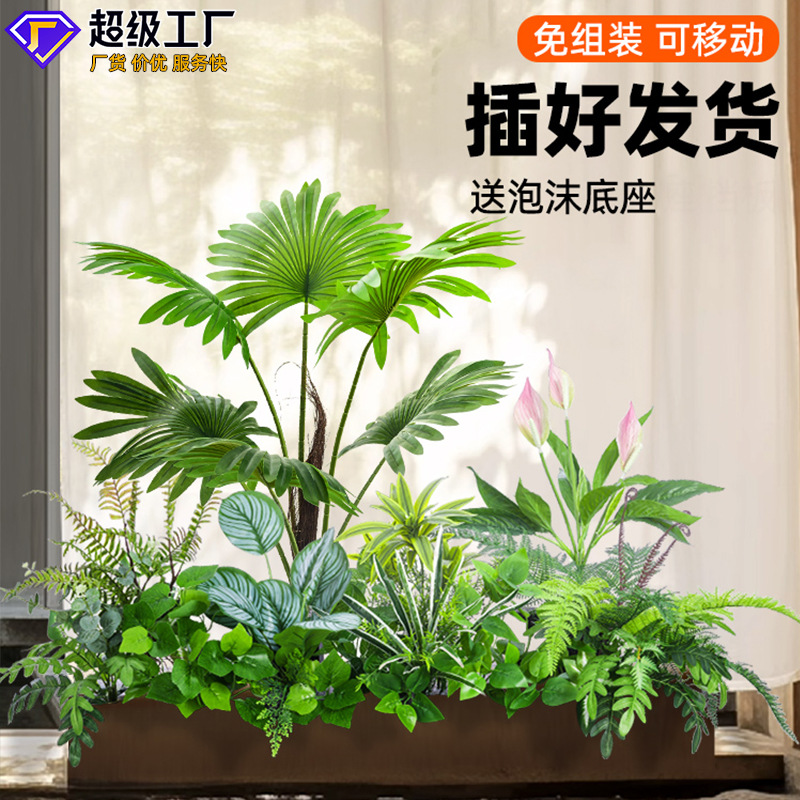 Bunga buatan partisi tanaman hijau buatan dekorasi lanskap kotak bunga melalui bunga bionik dan tanaman bunga buatan pemandangan kombinasi dekorasi
