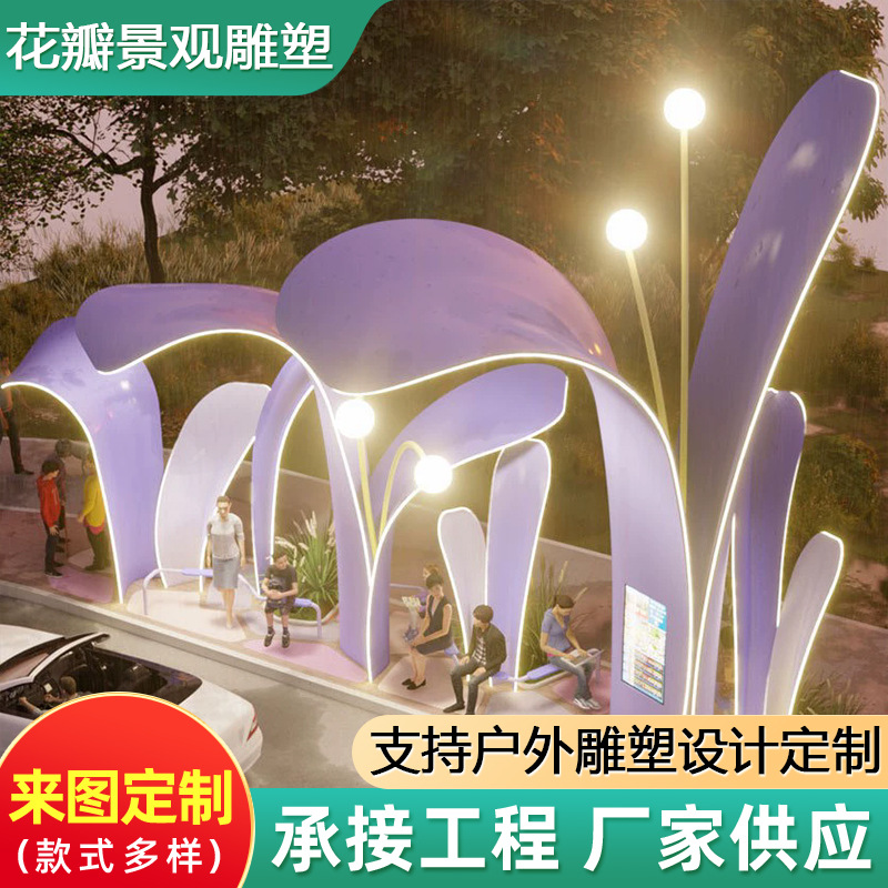 Taman Luar Ruangan Patung Lanskap Kelopak Besar Ungu Stainless Steel