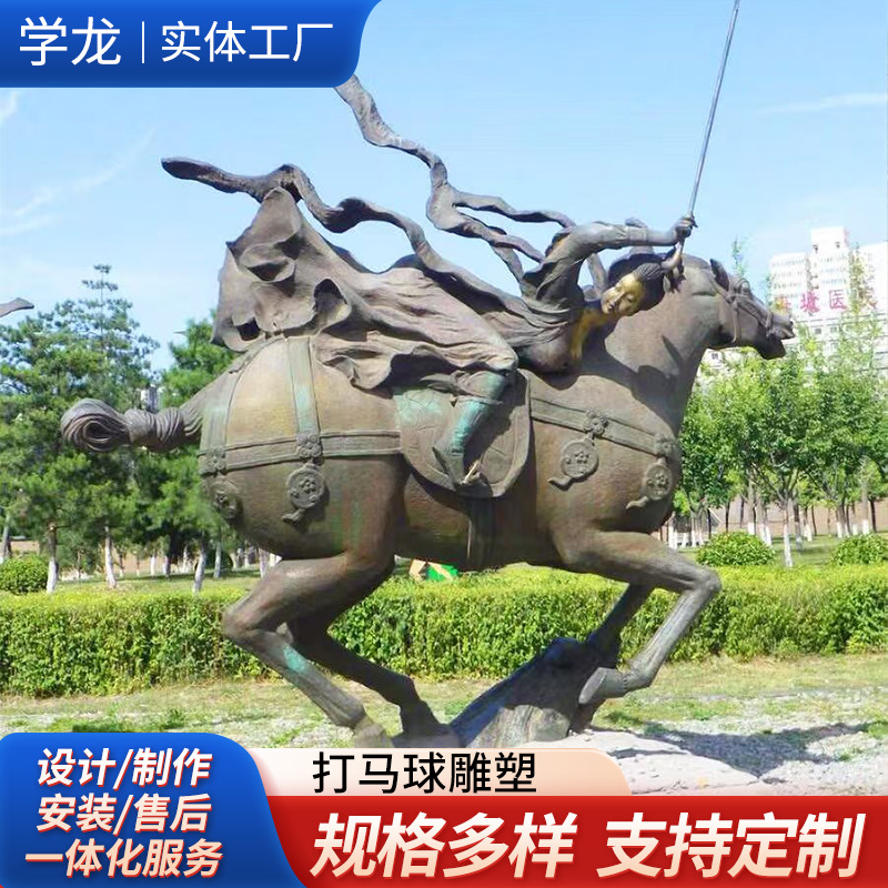 Patung Lansekap Taman Luar Ruangan Alun-alun Budaya Patung Tema Olahraga Polo Kuno Patung Lanskap Tembaga Murni Gaya Tiongkok