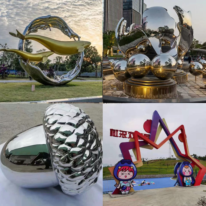 Stainless Steel Sculpture Produsen Kustom City Plaza Baja Putih Lansekap Taman Logam Ornamen Patung Besar